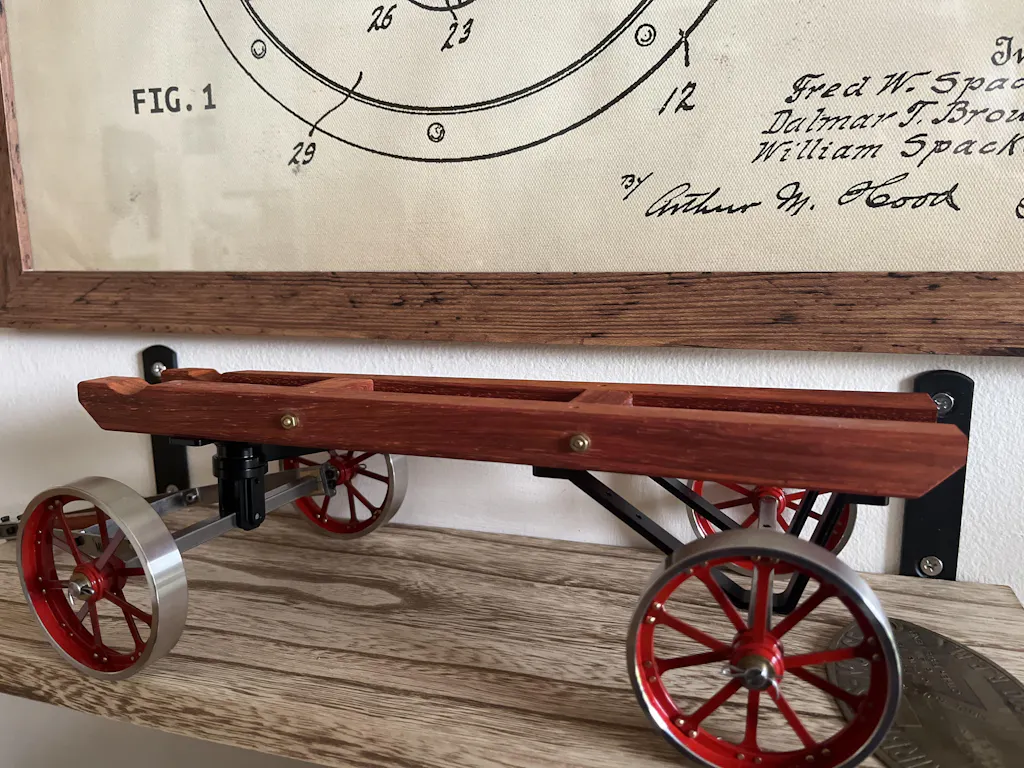 When I saw the mock-up of the Custom Steering Cart for RETROL HM-01 Hit and Miss Engine Model, that's when I knew I needed one. When it first started as a questionnaire, I sent in a resounding "YES" I'll take one. I already had the RETROL HM-01 Hit and Miss Engine Model and wooden sled, and the quality was to the higher standard that all Enginediy products have. Needless to say when the Custom Steering Cart arrived, it was a work of beauty.