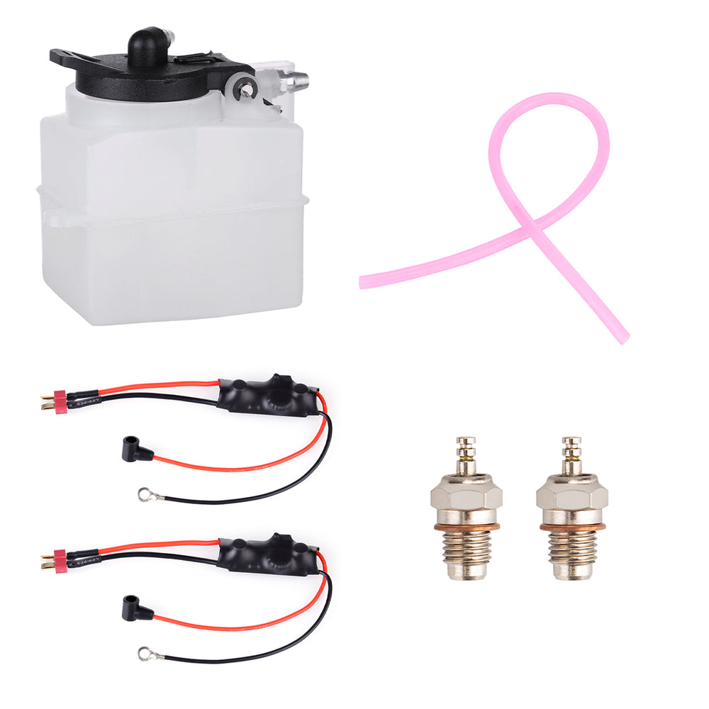 The starter kit contains 2pcs F-Type electric Plug, 1pc 7.4-11.1V 3-in-1 brush start ignition power module, 1pc oil tank and 1pc oil pipe, compatible with OTTO MOTOR & TOYAN FS-L200AC double-cylinder four-stroke nitro engine model kit.