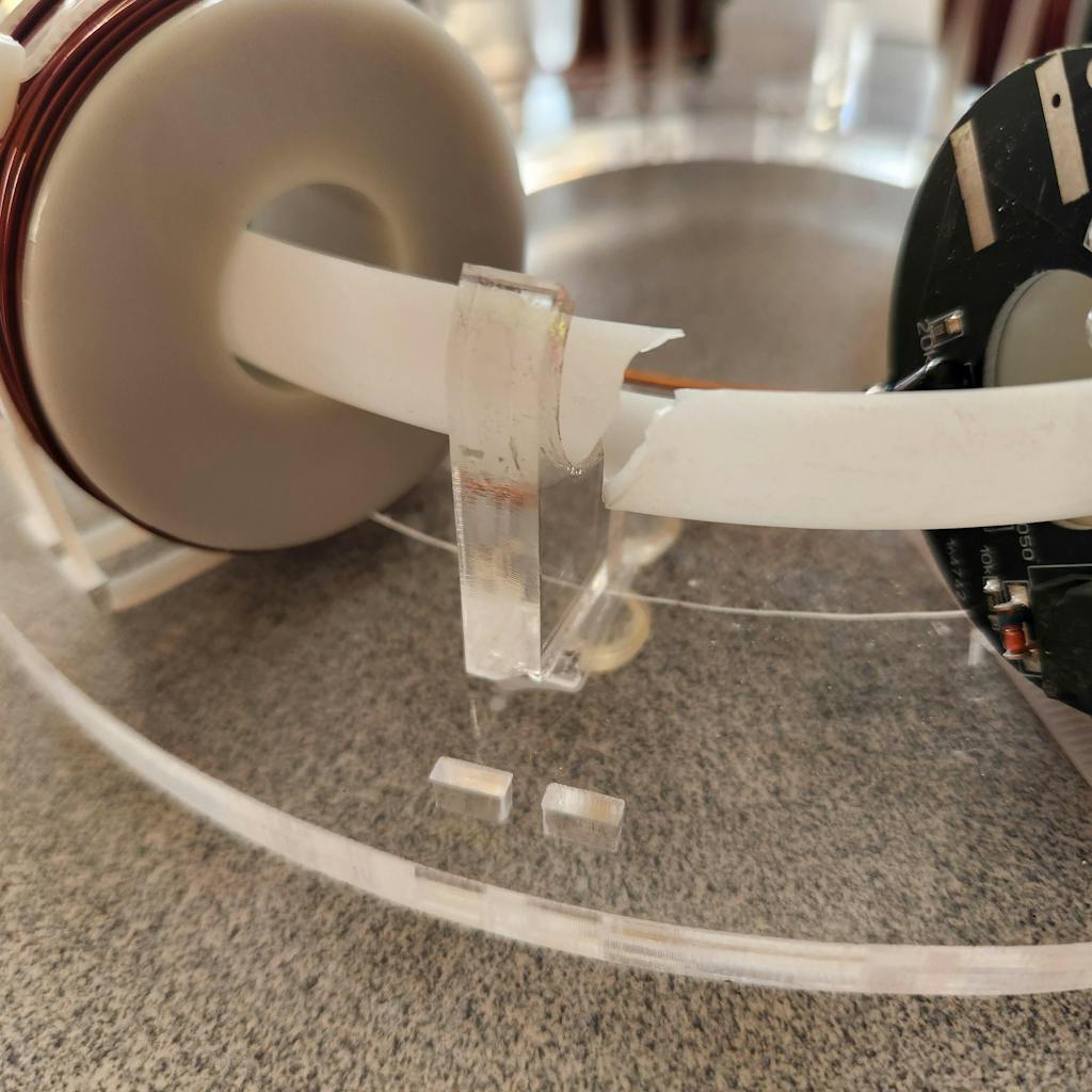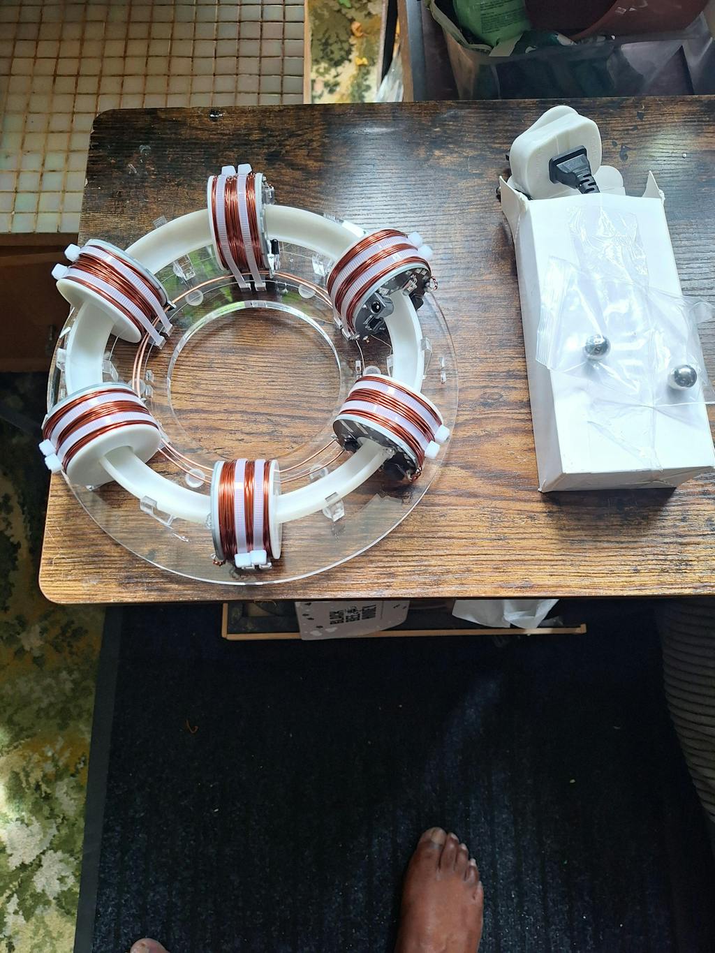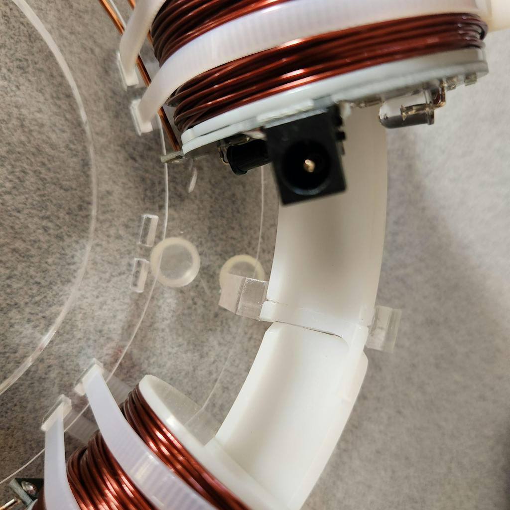 Oxygen-free copper coil, 940nm infrared tube, 15mm high magnetic steel ball, 23cm circular track and transparent acrylic structure