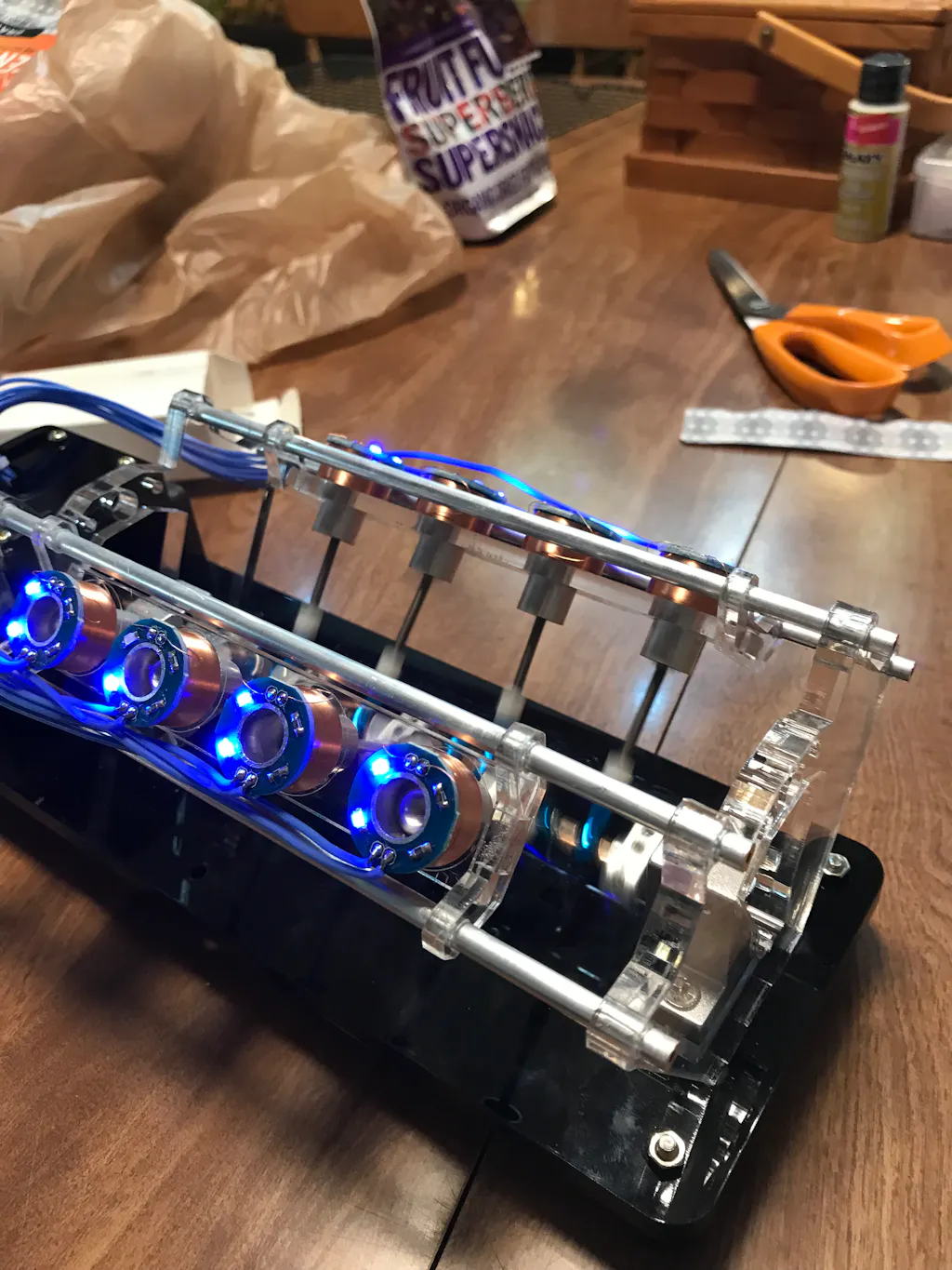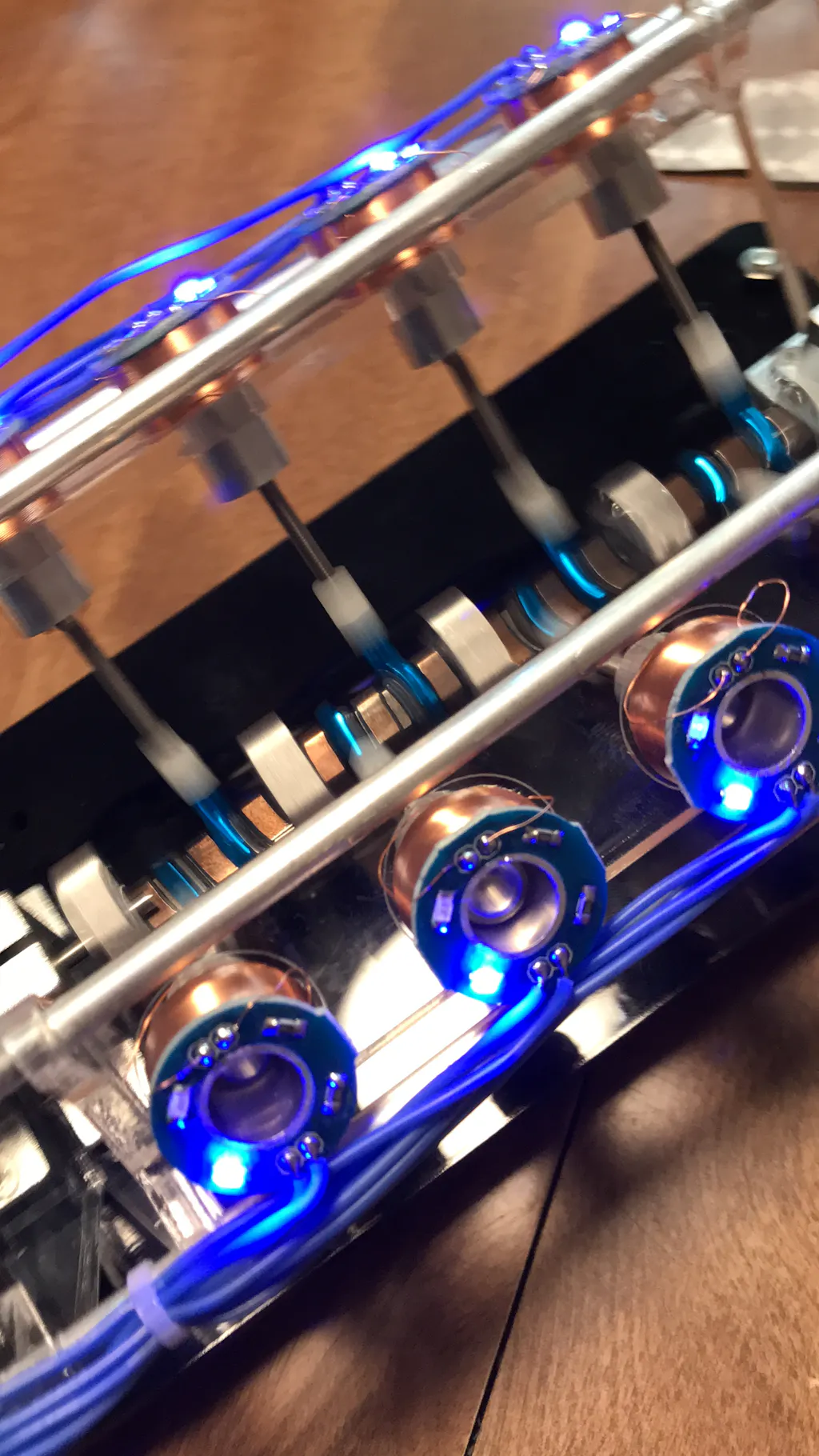 2, The cargo Hall sensor wants to cooperate, can generate magnetic force in a good position, and the operation effect is the best. The bearing used is a ball bearing, which has the advantages of low friction, quietness and durability, and provides strong support for smoother operation. The high-quality cutting acrylic support is used on both sides of the product, which has high transparency and no Deformed, beautiful appearance, the beam bracket is four carbon fiber columns, durable and stable, showing high-end atmosphere.