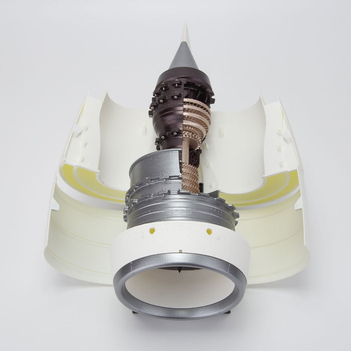 (1) Drawing from the original factory drawings, a movable visual turbofan engine model is designed based on the Airbus A380 engine TR900, with an external engine nacelle, which restores the original appearance of the engine to a great extent. (2) In the detachable and visible housing parts, you can see the operating mode of the turbofan engine, and all the fan blades are movable under the driving of the motor. The details are perfect in design and the degree of simulation is high. It is suitable for demonstration and has high ornamental value and collection value; (3) It is made of high-precision 3D printing of ABS material. Each part is carefully crafted and colored manually. After assembly, the quality is reliable and the color is realistic. (4) With the help of the detailed assembly step manual, you can build your own turbofan engine model in your living room and show your engineering talent to the world. Packed in luxurious and exquisite gift boxes, suitable for personal use and gift giving; (5) This model is an assembly toy. Do not play with it violently to avoid damaging the model. Please store it properly after use and pay attention to cleaning and maintenance so that it can be used for a longer period of time.