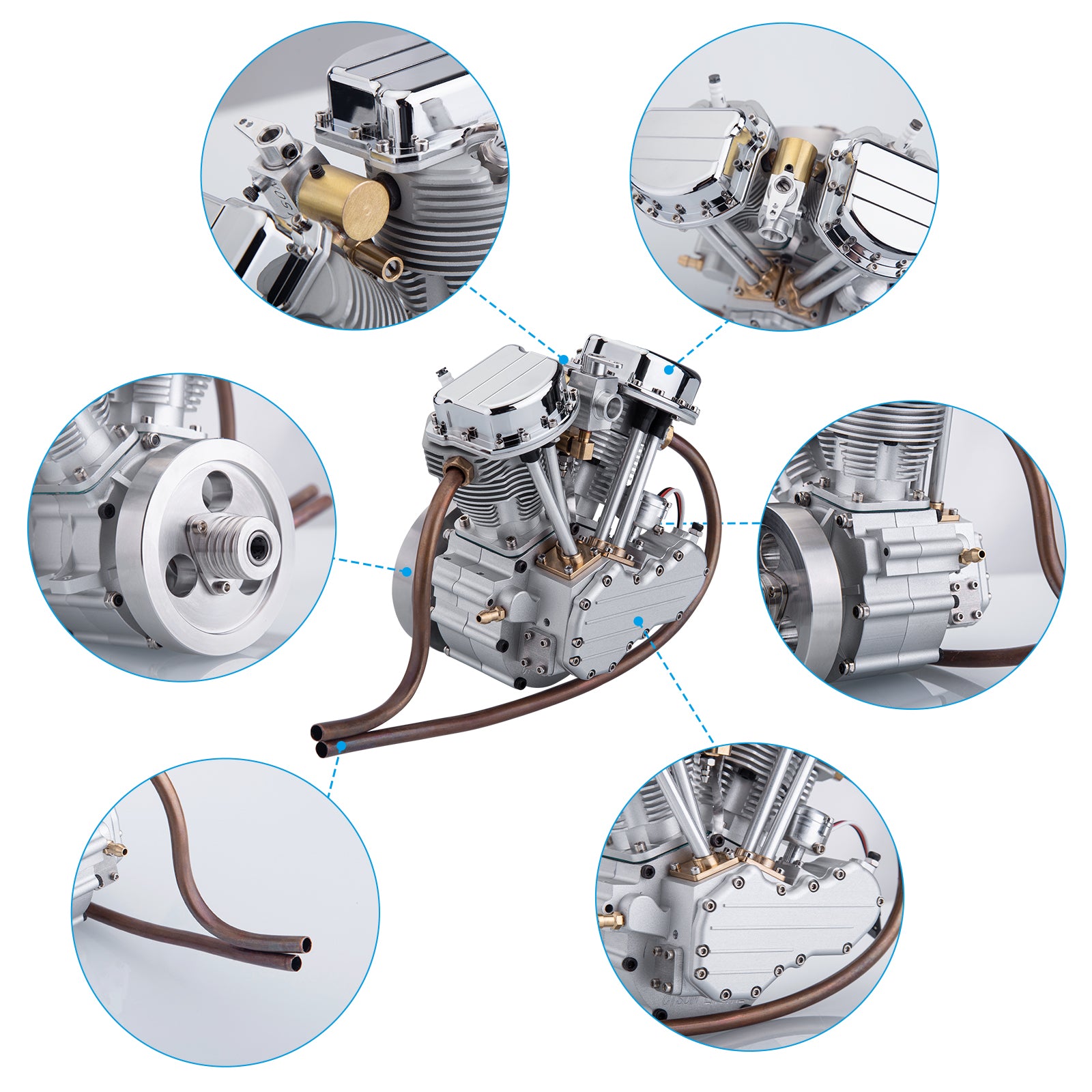 ported the exhaust ports.. added an extra shim on heads.. bigger bore stainless exhausts.. made custom engine mount with damping.. these are great engines from Cison.. perfectly usable as standard but I like to modify.. I'm in the process of making a variable advance retard ignition system.. run in on part synthetic 2T for 5 tanks now running on fully on less ratio.. I can highly recommend this engine.. big thumbs up!! Thanks Enginediy..