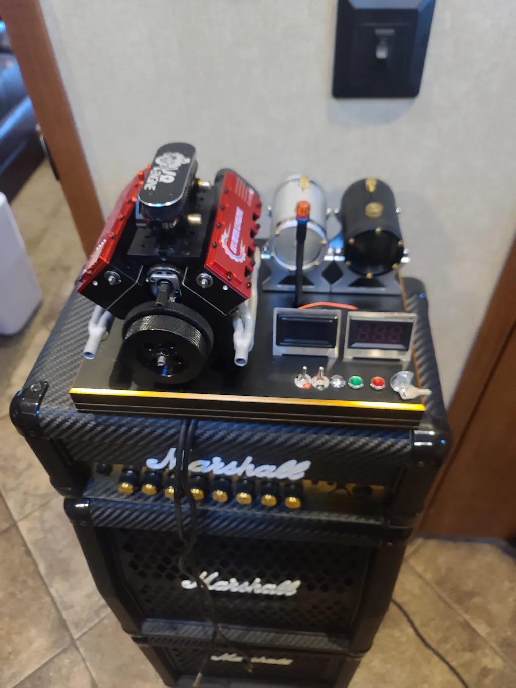 .Miniature & Simulated: The 1/10 scale realistic miniature V8 internal-combustion engine with racing-like appearance and red sport element is authentically simulated. .Long Stroke: Take long stroke as the engine design blueprint, it effectively provides higher torque. And the customized flexible oil seal ensures excellent sealing performance in high speed operation. .Mechanical Water Cooling: The engine is built in a mechanical water cooling pump whose power derives from the crankshaft, which provides circulation power for the coolant and is able to combine the cooling fan for strengthened self-cooling performance. .Precise Rocker Arm: With alloy rocker arm and independent intake & exhaust design, the valve switch operation will be more accurate. .Integrated Crankshaft Processing: Designed with 90 degree cruciform crankshaft structure, three-section support, bearing at both ends and middle bearing bush, the engine allows more smooth operation and more sensitive acceleration response with up to 12500rpm. .Dual Synchronous Belt Pulley: The timing structure of dual synchronous belt pulley greatly reduces the risk of gear jumping in high speed operation. .Accurate Carburetor: Enjoy more accurate adjustment, more sensitive throttle response and more stable performance thanks to the brand new dual carburetor with pump. .Integrated Exhaust Manifold: The small all-metal integrated exhaust manifold shaped by difficult processing technology makes V8 engine sound more powerful. .Lightweight: The compact design makes the product perfectly compatible with RC models, drastically improving the unit power output ratio. .DIY: Crafted from ultra-precise components, the engine model gives strong mechanical sense, enables smooth assembly experience and provide users with fun, helping to build their own V8 engines. .Wide Applications: The product makes a superb desktop power engine model to play, a tool for RC model cars or boats modification, a teaching aid for physical mechanical experiments and a high-end holiday gift for model enthusiasts. .Note: The engine is KIT component version, and ignition starting parts and water cooling parts need to be purchased separately. Please follow the instructions carefully to avoid engine damage or danger. For any questions, just contact us. Suitable for 14+ years old.