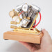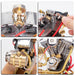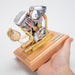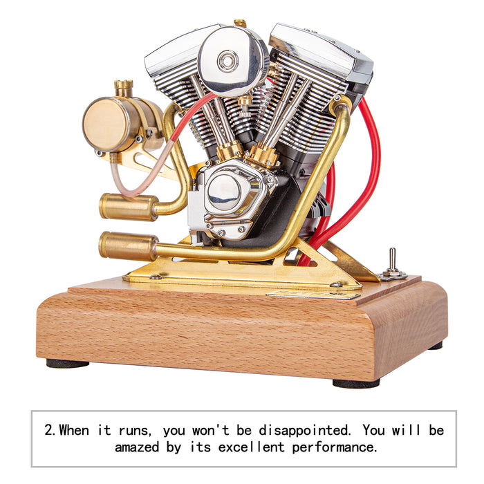 Features: .As a miniature gasoline engine model designed based on the V-twin Evolution engine of the 1970s motorcycle, this engine model embodies the spirit of different eras in a wonderful way. .Features a retro flavor, classic body lines, cold cooling structure, new carburetor design, and a push-type throttle lever, this most intricate engine model highly restores the details of a real engine. Upgrade the intake and exhaust valves to large and small valves, thus the power is significantly improved. .Each elaborate part in a fine process is made of brass and stainless steel materials, in conjunction with a wooden base for easy placement and operation, ensuring smooth operation. .Including starting and ignition devices, ready to run at any time, this model is friendly to novice model enthusiasts. You will be amazed by its good performance when it is running. .Perfect as a coveted collectible for displaying and playing with, as well as for personal use or as a high-end model gift for friends and family during major holidays.