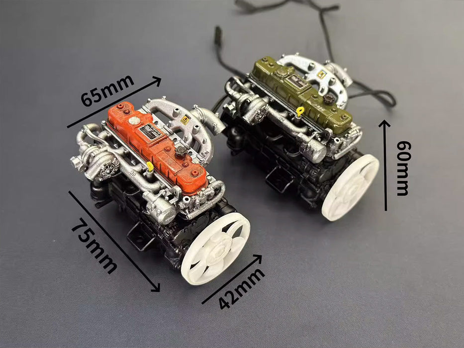 Experience the magic of miniature engineering with our 1/10 Scale Resin Inline Four-Cylinder Functional Diesel Engine Model. This vintage model brings the charm of classic engines to your RC vehicle, model garage, or display setup. Designed with incredible attention to detail, it features a movable frame powered by a receiver, allowing for functional operation in a compact form.