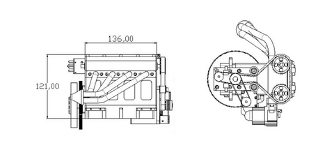 Le rapport de cylindrée du moteur DOHC par rapport au modèle d'origine est d'environ 1:6, avec une pompe à huile intégrée, une pompe de refroidissement à eau externe et un moteur sans balais faisant office de démarreur électrique. La conception à double arbre à cames et à 8 soupapes lui confère une apparence plus symétrique.