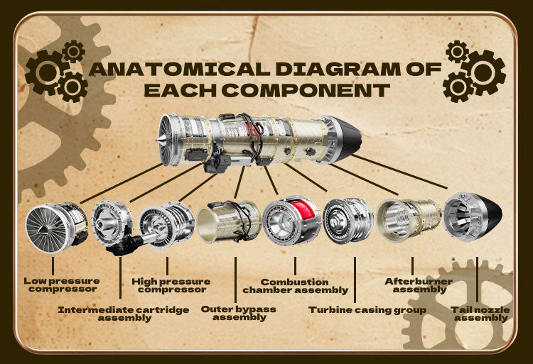 teching 1/12 full metal dual-spool turbofan engine model kit 300+pcs