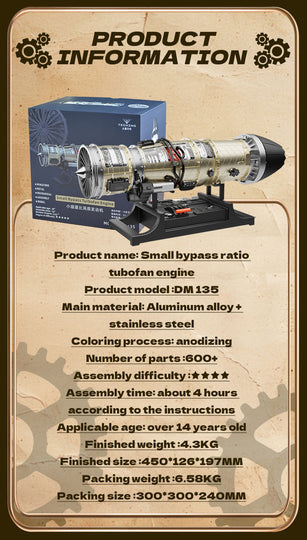 Turbofan Engine Model Kit that Works - Build Your Own Turbofan Engine - TECHING 1/12 Full Metal Dual-Spool Turbofan Engine Model Kit 300+PCS