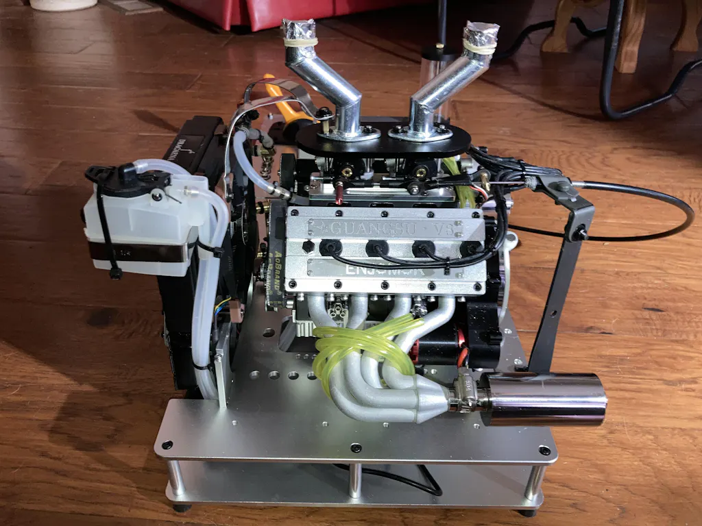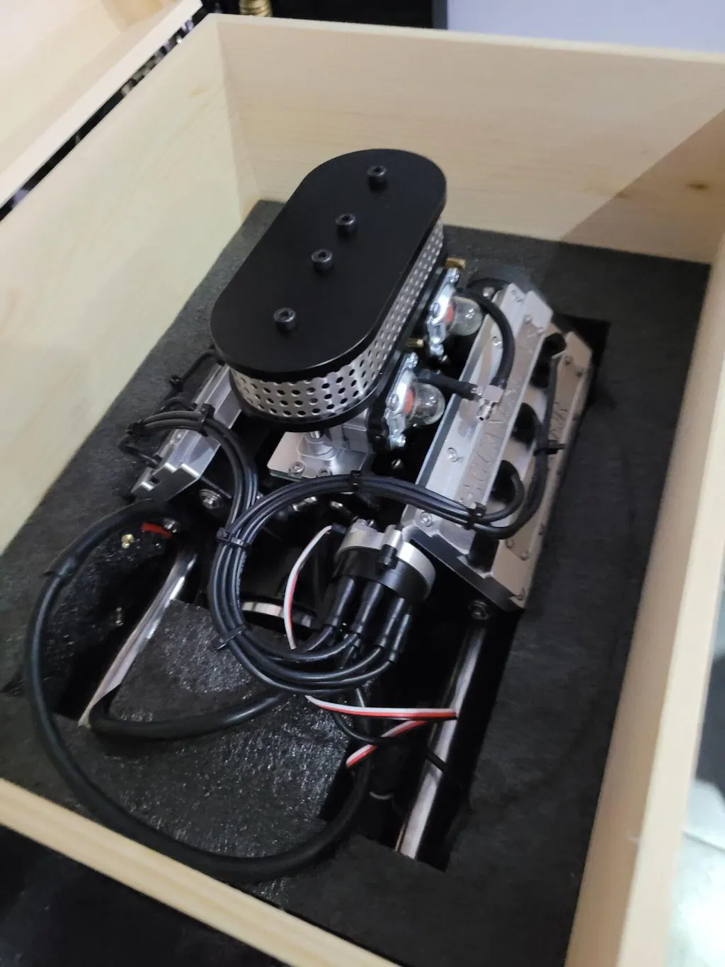 I ordered the ENJOMOR V8 with starter kit from Enginediy on the 25th July 2023 and after a well communicated emails regarding delivery dates , thanks Lucas, received the engine on the 26th September 2023. It arrived quickly with a tracking number and was exceptionally well packed both externally and internally of the nice wooden box which included the starter kit accessories and a spare hall sensor and coolant tube.