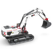 Function: 1:14 high simulation modelling ratio, 2.4G wireless omni-directional remote control, 22CH can go forward, backward, turn left, turn right, the console can rotate infinitely 360°, built-in LED lighting effect, dual crawler drive crawling, boom Each joint of, forearm, bucket, etc. can be operated independently by remote control, simulating the function of excavation operation.