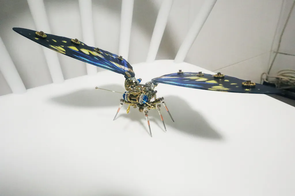 .The wear-resistant retro steampunk toys are made of premium-quality metal materials including stainless steel, iron and copper with many carved parts, textured metal parts, visible wing texture with matte/bright surface (remember to tear the film on the bright side) and a thickness of 3-4mm to perfectly restore the real butterfly wings. .Comes with 150+ PCS parts and clear instructions for easy DIY assembly by using screws. The combination of metal and highly simulated wings are of great art collection value, and suitable for gifts. .Enjoy fun and a sense of accomplishment through DIY assembly. The exquisite product features many mobile joints and adjustable wing structure. By assembling, children analyzes the mechanical structure of butterfly, this not only develops their practical ability and creativity, but also bring fun. Children under 12 shoud be accompanied by parents to play. .It allows children to understand the beauty of different butterflies and the mimicism principle of butterfly wing structure in different natural ecological environments. Recreate rare or endangered butterflies with metal artworks, know the beauty of them and protect the natural environment! .Morpho Helena, who lives in the tropical rain forests of northern South America, is the most beautiful butterfly in the world and the national butterfly of Peru. It is very rare and has weak reproductive ability. The color at both ends of its front wing varies from dark blue, deep blue and light blue. The whole wing surface is like the blue sky inlaying a string of golden beads which are shining. .Includes butterfly body * 1, Morpho Helena wing * 1 pair, butterfly tape * 1 roll (color random), butterfly postcard * 1 (pattern random), paper instruction * 1, assembly tool * 1 set